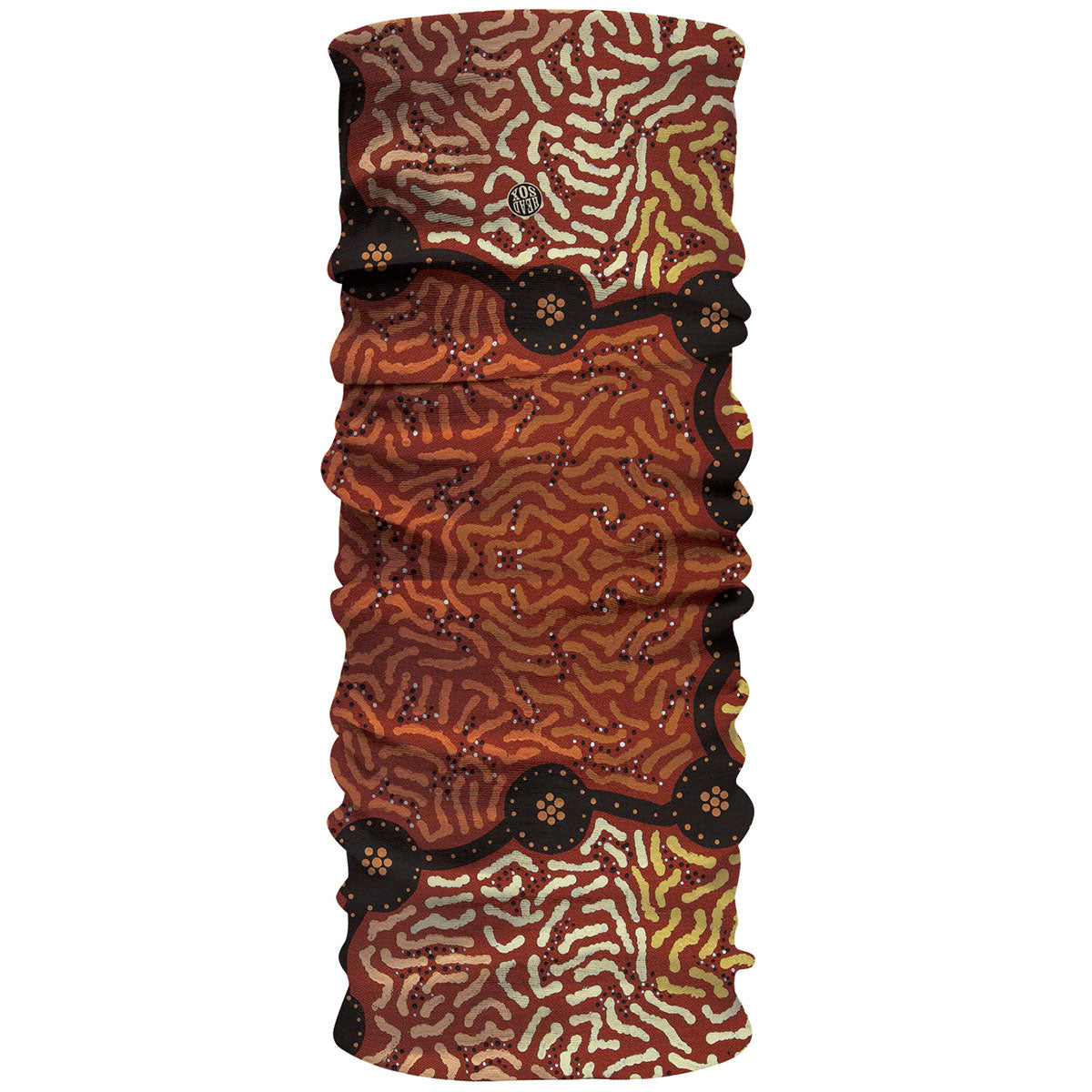 The Canning Stock Route is a famous desert track leading north to Darwin, starting from the remote town of Wiluna. This unique design painted by artist Roxanne Anderson traces the route through the landscape and shows where life giving water can be found.Roxanne was born on Barwidgee Station at Top Mill. She is part of a family of artists, with two brothers and four sisters who are also painters. She is an experimental artist, currently working with concepts of country in a colourful and contemporary style. Her work is sought after, attracting buyers from within Australia and overseas.10% of your Headsox Red Sand Dunes design purchase price goes directly to Roxanne.