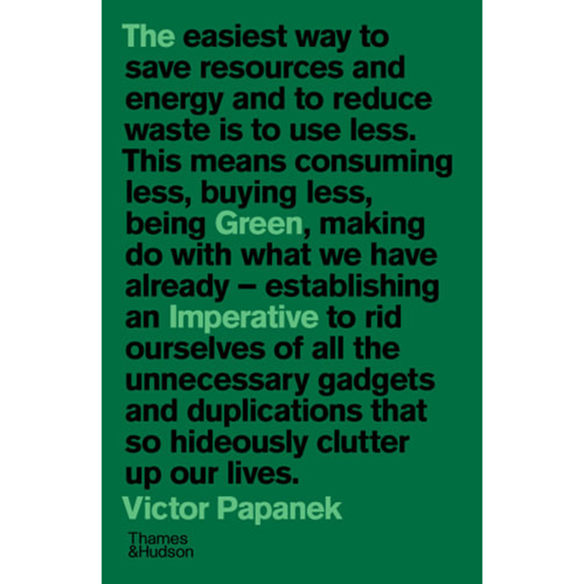Whether it’s horror at plastic littering the world’s beaches, or despair at the melting of the polar ice caps, the world is gradually waking up to the impending climate disaster. In The Green Imperative, Papanek argues for design that addresses these issues head on. This means using materials that can be recycled and re-used, no more pointless packaging, thinking about how products make us feel and engage all our senses, putting nature at the heart of design, working at a smaller scale, rejecting aesthetics for their own sake, and thinking before we buy.First published at the close of the 20th century, the book offered a plethora of honest advice, clear examples and withering critique, laying out the flaws and opportunities of the design world at that time. A quarter of a century on, Papanek’s lucid prose has lost none of its verve, and the problems he highlights have only become more urgent, giving today’s reader both a fascinating historical perspective on the issues at hand and a blueprint for how they might be solved.With 141 illustrations, 26 in colour