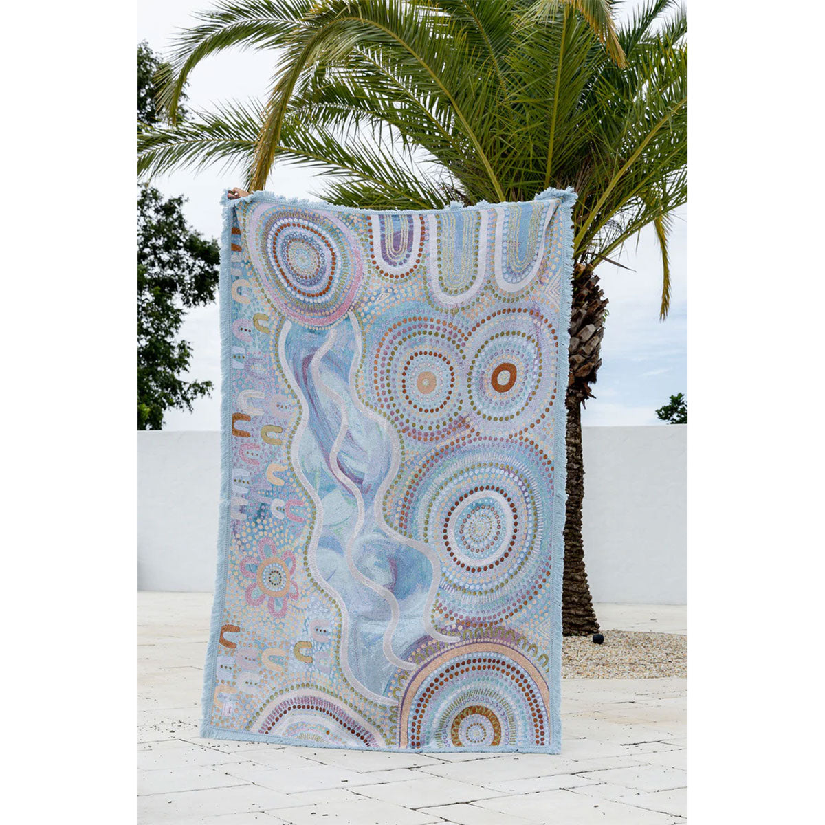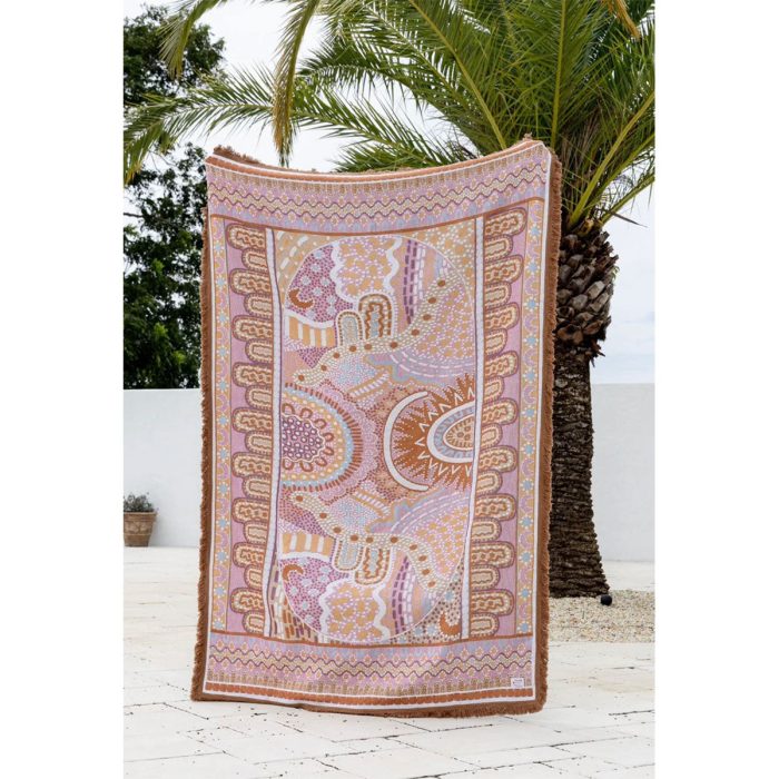 Cotton Throw – 125x150cm -JWA696Mina Mina, a place far west of Yuendumu, significant to Napangardi and Napanangka women who are the custodians of the