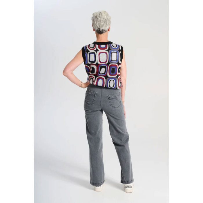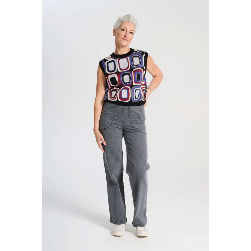 Regular fitRibbing at neckline, armholes, and hemlinePatterned knit designInsulating, warm fabrication65% Merino Wool; 35% Recycled PolyesterModel is size 8 and wears a S/MModels height is 176cmMatch with the Upper Eastside denim skirt in mid-wash, as worn by the model