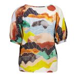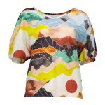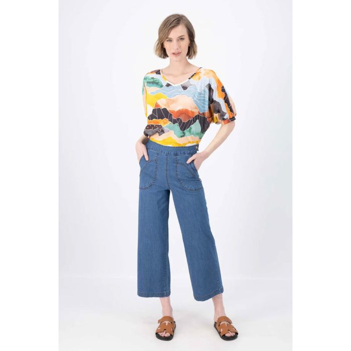 Print: Vista Orange100% Cotton fabricSoft V-neckline / reversible boatneckBatwing shapeTapers in at the hipBoxy with a nice drapeFinishes at the hipSleeve cuff with slight elastic stretchMatch with the Peggy Ligera Pants in Light Wash Summer Denim as worn by the modelModel is 181cm tall and is wearing an XSModel is a size 10. Bust: 89cm | Waist: 79cm | Hips: 99cm
