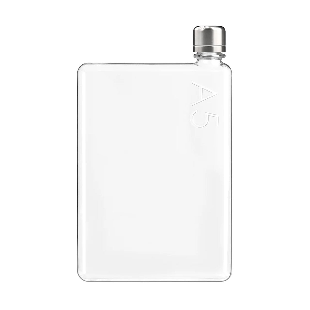 The A5 memobottle fits perfectly in your bag alongside your iPad, books and laptop. Based on the A5 international paper size, its ergonomic shape allows for a Tetris style fit. The A5 memobottle is the companion you have been looking for to keep you healthy, hydrated and stylish. With an elegant form and minimal appearance, the A5 memobottle will easily become part of your daily routine to stay healthy and hydrated.The transparent exterior turns ordinary H20 into a mesmerising and playful work of art, that also encourages you to increase your daily water intake. Add a vitamin boost to every sip by placing a few blueberries or strawberries inside. Your A5 memobottle is paired with a Stainless Steel Lid, and is encased inside premium recycled packaging; a perfect gift for yourself or a loved one.The striking design and shape of memobottles have won multiple design awards and are exclusively trademarked, so rest assured you have the authentic and original memobottle, which is crafted from the highest quality BPA, BPS-free plastic and backed by a 2-year manufacturing warranty.Boasting a 750ml capacity, the A5 memobottle allows you to stay focused and be more productive. It’s the only reusable water bottle you will need, which in turn will help reduce single-use water bottle consumption.  Discover the art of drinking with memobottle.Did you know? Every memobottle sold provides one person with five months’ access to clean water thanks to the partnership with water.orgIt’s so easy to clean your memobottle. Simply wash with warm water and vinegar. Not suitable for the dishwasher or carbonated liquids.    Capacity: 750ml    Easy to clean    BPA-BPS Free Plastic    Hot and Cold Liquids    Dimensions: 243mm x 148mm x 30mm