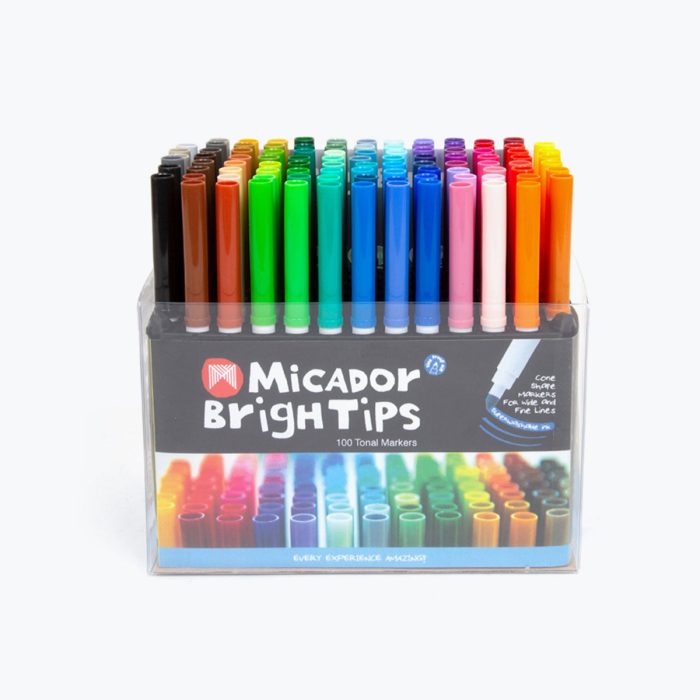 Never be short of colour with 100 different colours to choose from in the one class set!The markers have cone shaped tips for thick and thin drawingRe