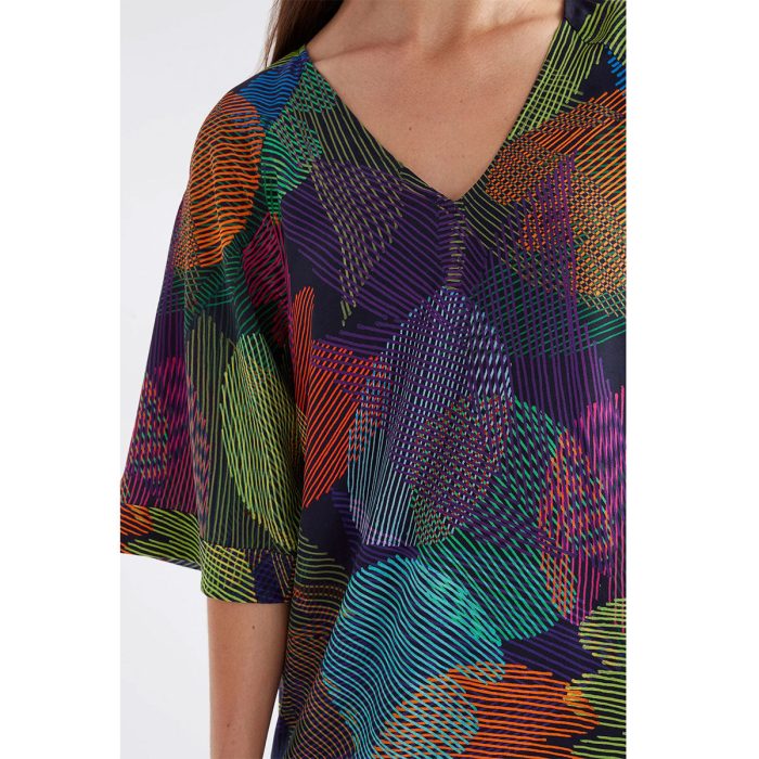 The Byde Top is a classic silhouette with thoughtful design details. Printed in the vibrant Ekko Print, this top features short raglan, tulip sleeves
