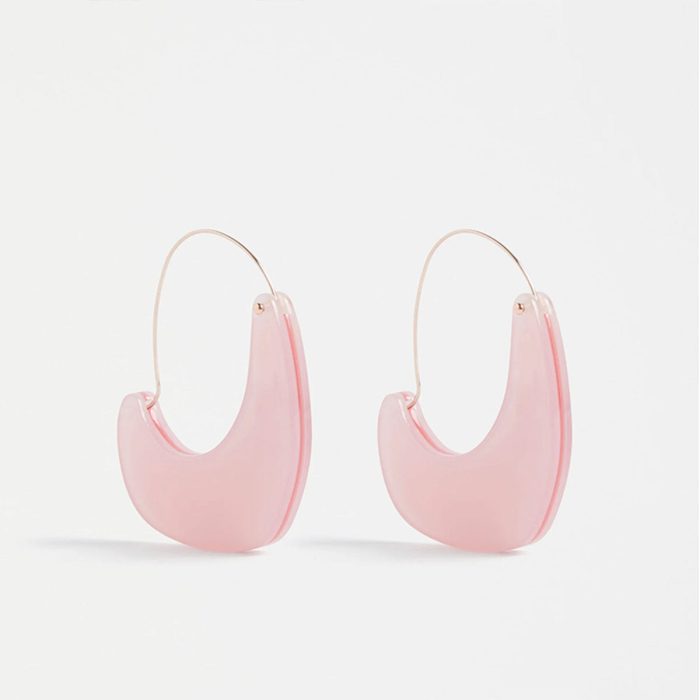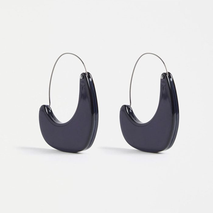 Soft, sculptural, and full of character. The organic crescent shape, crafted from translucent acetate with a hinged hoop, adds subtle movement and a p